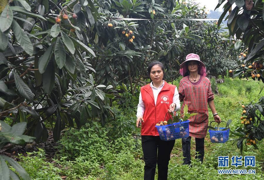 唐莉(左)在平樂縣張家鎮(zhèn)老埠村了解村民家庭農(nóng)場(chǎng)運(yùn)營情況(5月4日攝)。新華社記者周華攝