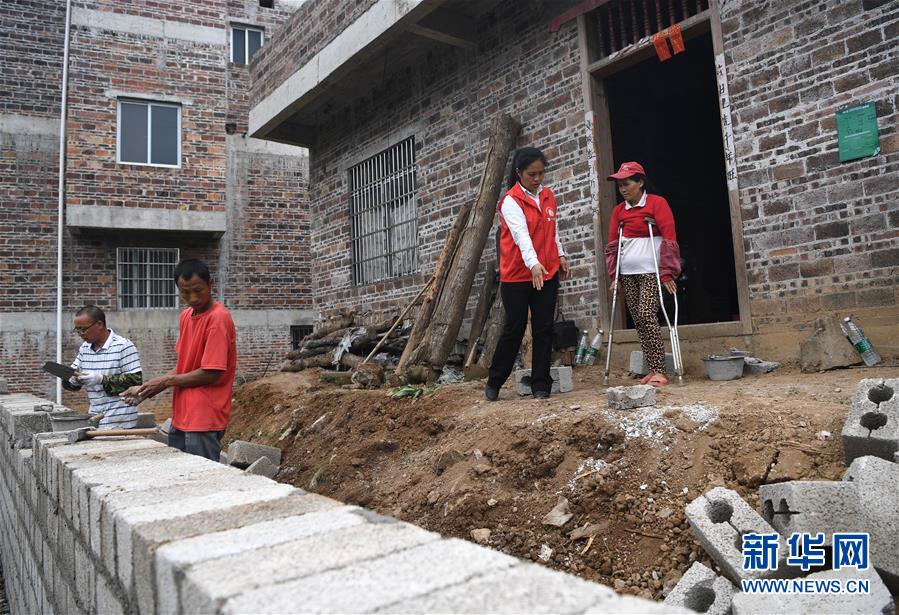 唐莉(右二)在平樂縣張家鎮(zhèn)老埠村貧困戶陶仁桂家查看無障礙設(shè)施改造項(xiàng)目建設(shè)進(jìn)展(5月4日攝)。新華社記者周華攝