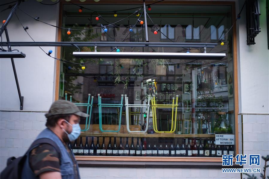 歐盟委員會5月6日預(yù)測,受新冠疫情影響,2020年歐洲經(jīng)濟將出現(xiàn)“歷史性衰退”,歐盟經(jīng)濟將萎縮7.5%,歐元區(qū)經(jīng)濟將萎縮7.75%。這是4月17日,在比利時布魯塞爾,一名戴口罩的男子經(jīng)過一家關(guān)閉的餐館。新華社記者張鋮攝