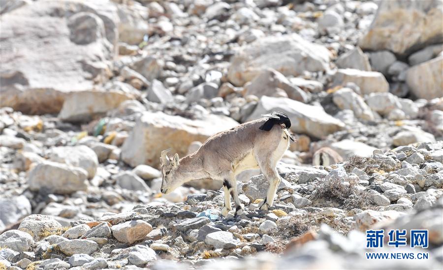 黃嘴山鴉停在巖羊背上(5月8日攝)。當(dāng)日,一群巖羊在珠峰大本營周圍覓食,黃嘴山鴉飛到巖羊身上停留,構(gòu)成一幅幅生動有趣的雪域圖畫。新華社記者普布扎西攝