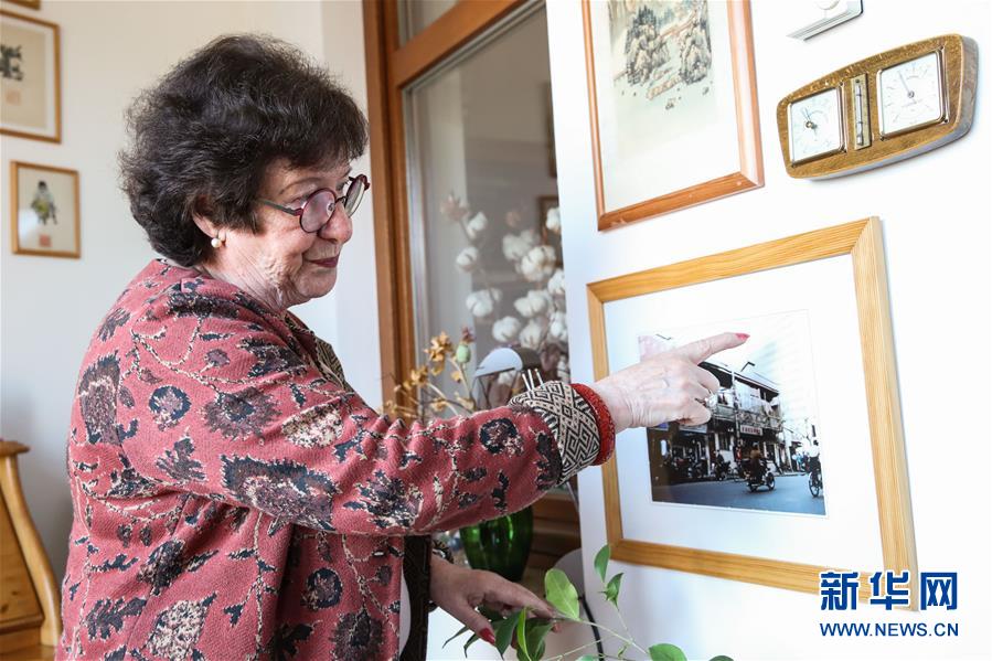4月23日,索尼婭·米爾伯格在位于德國(guó)柏林東郊一個(gè)小鎮(zhèn)的家中介紹她在上海舊居的照片。新華社記者單宇琦攝