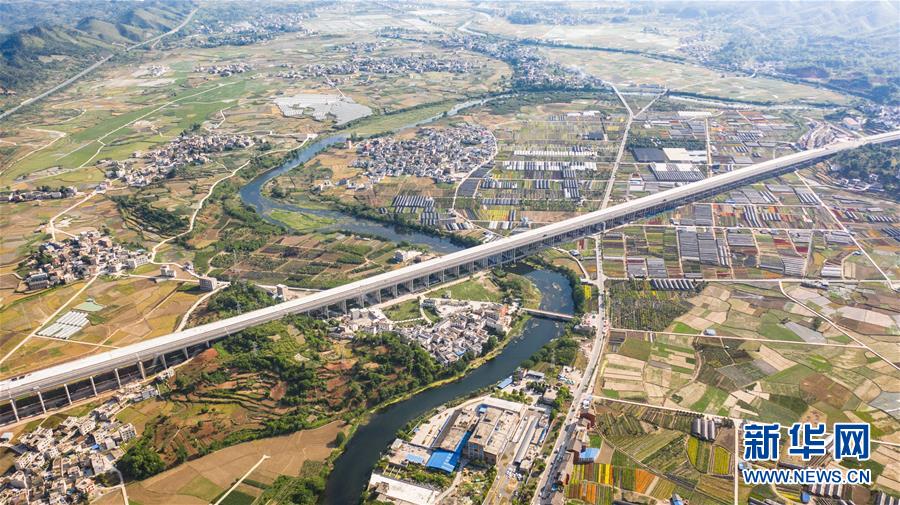 都安高速改擴(kuò)建路段的惠水特大橋(無人機(jī)照片,5月9日攝)。 新華社記者 陶亮 攝