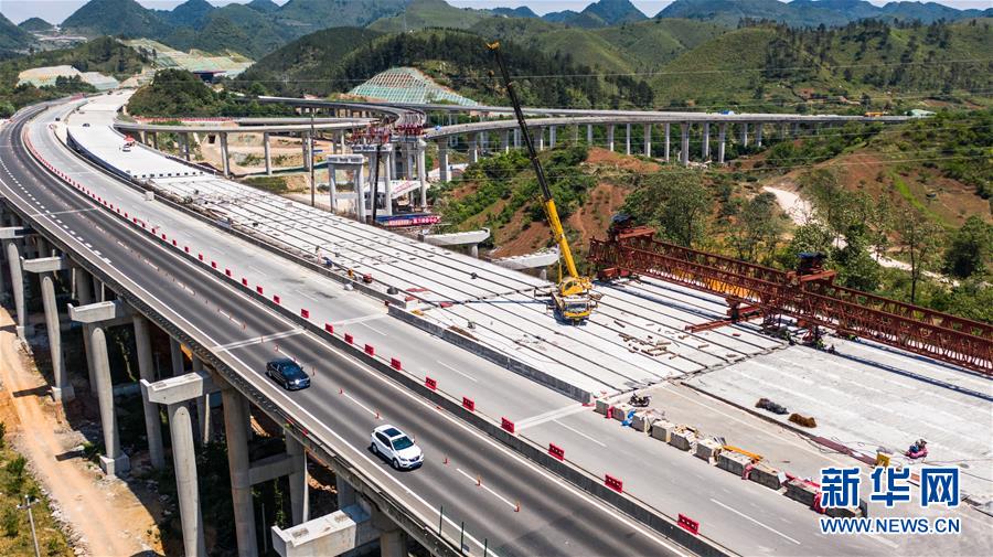 都安高速改擴(kuò)建路段的惠水樞紐(無人機(jī)照片,5月9日攝)。 新華社記者 陶亮 攝