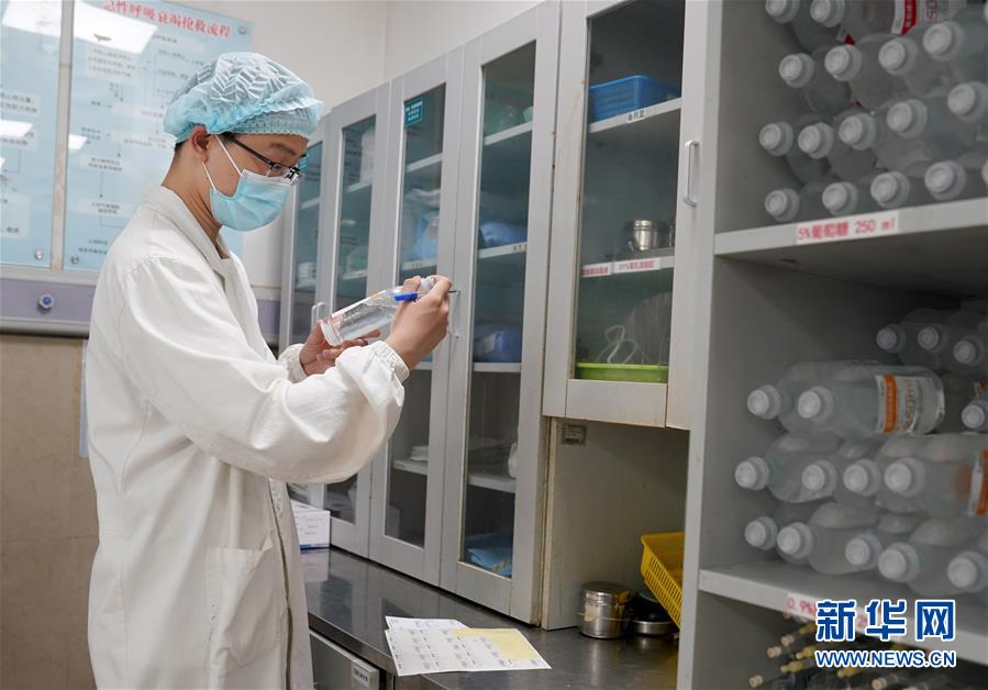 5月10日,在上海市普陀區(qū)中心醫(yī)院急診室,護士蔡杰君在準備藥品。他曾在浦東國際機場“外防輸入”抗疫一線堅守30天。新華社記者劉穎攝