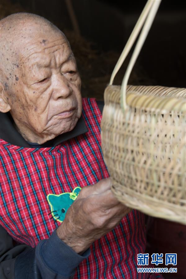 5月12日,浙江諸暨龍溪村的百歲老人蔡渭東在家中查看一個(gè)剛編的竹籃。浙江諸暨東和鄉(xiāng)龍溪村有一位102歲的老人蔡渭東,他從12歲開始拜師學(xué)藝,做了90年的篾匠,如今依然耳聰目明,每天堅(jiān)持編織篾器。蔡渭東老人說他舍不得丟掉這份老手藝,也希望年輕人能傳承下去。新華社記者翁忻旸攝