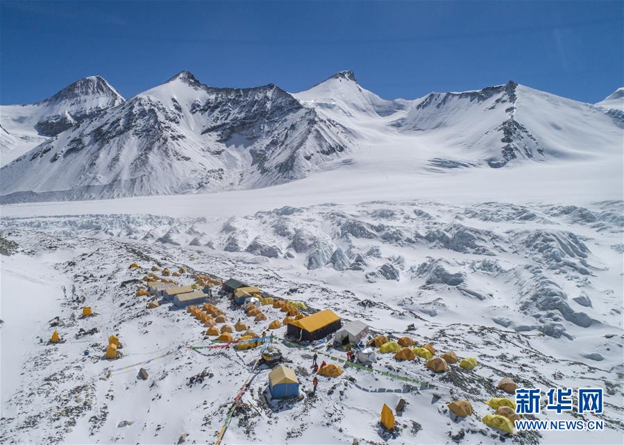 這是海拔6500米的珠峰前進(jìn)營地(5月10日無人機(jī)照片)。新華社記者孫非攝