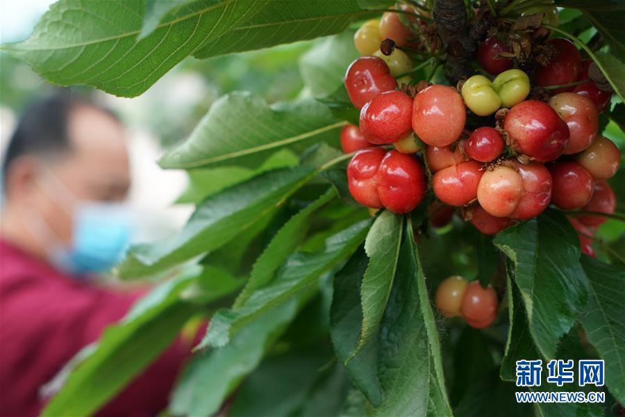游客在金湖縣金綠源果蔬采摘園采摘櫻桃(5月11日攝)。新華社記者韓瑜慶攝