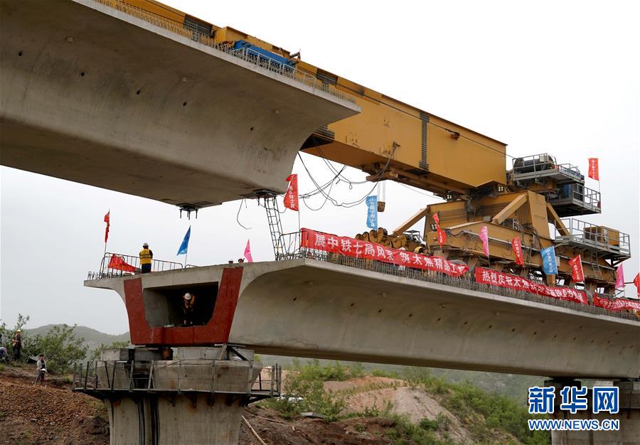 5月13日,運架一體機在位于河南焦作的施工現(xiàn)場進行架梁作業(yè)。 當(dāng)日,隨著最后一榀長24米、重552噸的箱梁架設(shè)就位,太焦高鐵全線橋梁架設(shè)完成。從山西太原到河南焦作的太焦高鐵是國家規(guī)劃建設(shè)的“八縱八橫”高速鐵路網(wǎng)的重要組成部分,計劃2020年底建成通車。 新華社記者李安攝