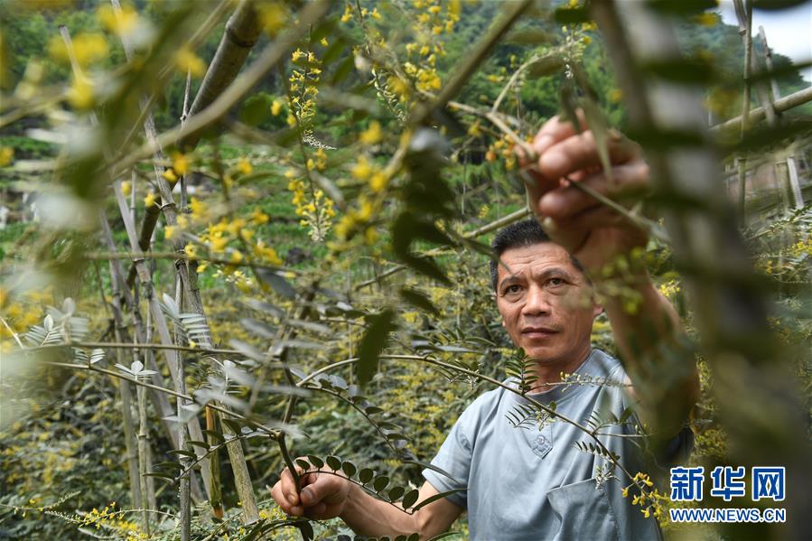 5月13日,在廣西環(huán)江毛南族自治縣下南鄉(xiāng)下塘村,村民在管護(hù)中草藥。新華社記者陸波岸攝