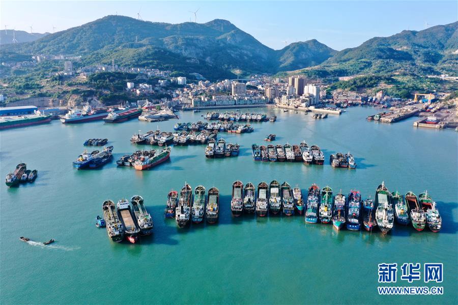 5月13日,休漁漁船停泊在福建省連江縣黃岐鎮(zhèn)海域(無人機(jī)照片)。新華社記者姜克紅攝