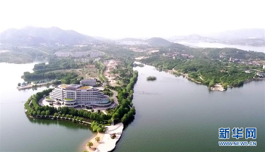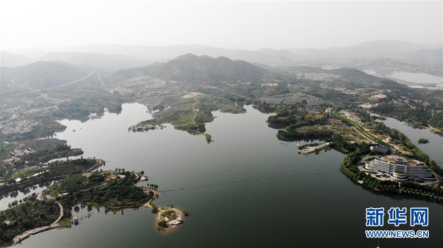這是5月17日拍攝的雪野湖景色(無(wú)人機(jī)照片)。山東濟(jì)南風(fēng)景區(qū)——雪野湖波光粼粼,岸邊綠樹(shù)環(huán)抱,加上星星點(diǎn)點(diǎn)的帆船在湖面搖曳,景色宜人。新華社記者王凱攝