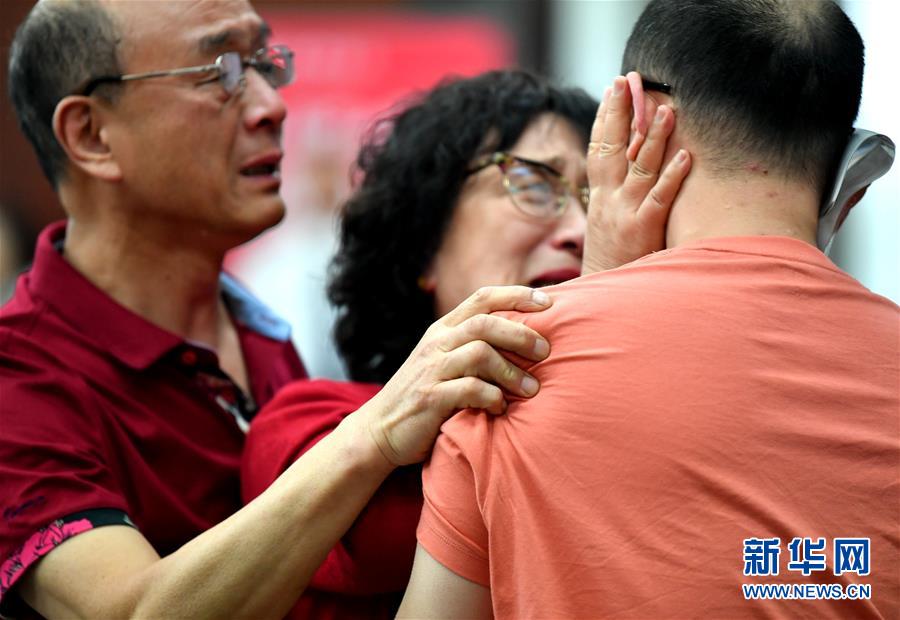 5月18日,李靜芝、毛振平(左)與失散32年的兒子毛寅團聚。新華社記者張博文攝