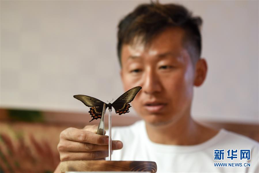 在吉木薩爾縣七彩蝶園,關(guān)富云在制作蝴蝶標本(5月15日攝)。走進關(guān)富云的七彩蝶園,游客不僅可以近距離接觸翩翩起舞的蝴蝶,還可以欣賞蝴蝶破繭成蝶的蛻變過程。今年34歲的關(guān)富云用9年的時間實現(xiàn)了自己的“蝴蝶夢”,完成美麗的“蝶變”。關(guān)富云家住新疆吉木薩爾縣北地社區(qū)。2011年,他看到一檔農(nóng)業(yè)致富節(jié)目,萌生了養(yǎng)殖蝴蝶的想法。關(guān)富云說,當時蝴蝶養(yǎng)殖還是一種新興產(chǎn)業(yè),他抱著試一試的想法,在海南學習了3個月蝴蝶養(yǎng)殖,帶回100多個蝶蛹在家試驗養(yǎng)殖。蝴蝶的生存周期短,在當?shù)仞B(yǎng)殖需要克服溫度、濕度、病蟲害等問題。關(guān)富云不斷嘗試,越挫越勇,羽化成功的蝴蝶在2014年終于突破了萬只。蝴蝶的色彩艷麗,活體蝴蝶可用于婚慶、開業(yè)慶典等活動中放飛,可以取得很好的收益。但它的生命短暫,如何才能最大化蝴蝶的效益,留住它的美呢?關(guān)富云動起了心思,開始嘗試制作標本和蝶翅畫?!昂宛B(yǎng)殖不同,做蝶翅畫是個創(chuàng)作的過程,從選擇標本到粘貼,每一步都要突出美感?!标P(guān)富云介紹,一幅色彩明艷、栩栩如生的蝶翅畫耗時多日才能完成。如今,關(guān)富云的活體蝴蝶和蝶翅畫通過線上線下銷售,產(chǎn)品還銷往北京、廈門等地。關(guān)富云的蝴蝶產(chǎn)品得到市場的認可,政府也對他給予大力支持。2019年,吉木薩爾縣在泉子街鎮(zhèn)建起蝴蝶觀賞園,吸引了不少游客到此參觀游玩。對于未來的發(fā)展,關(guān)富云信心滿滿,“我希望把蝴蝶產(chǎn)業(yè)發(fā)展到天山南北,讓人們在寒冷的冬季也能觀賞到蝴蝶,并且讓更多人參與其中,致富脫貧”。新華社記者丁磊攝