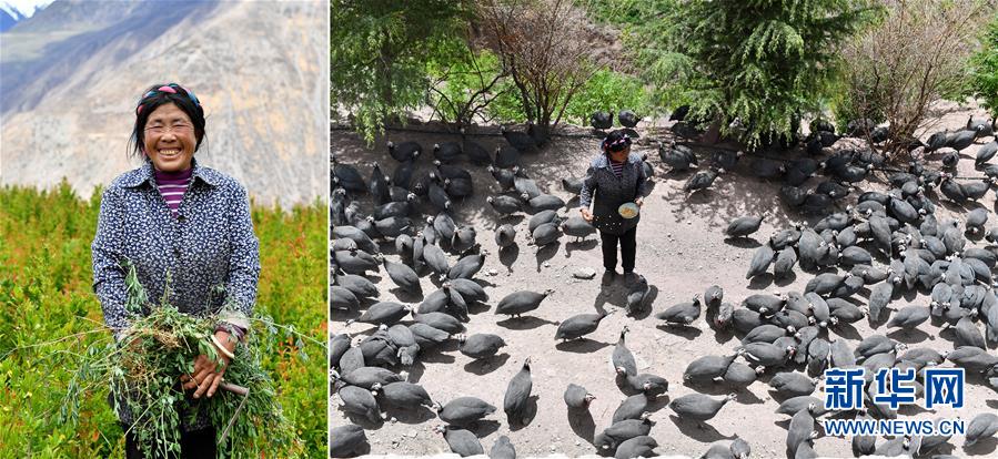 拼版照片:左圖為西藏昌都市芒康縣納西民族鄉(xiāng)加達村村民白姆;右圖為白姆在芒康縣納西民族鄉(xiāng)三江農(nóng)民專業(yè)合作社喂雞。白姆在三江農(nóng)民專業(yè)合作社打工,主要負責喂雞和喂牛,每月有3000元的收入(5月4日攝)。新華社記者詹彥攝