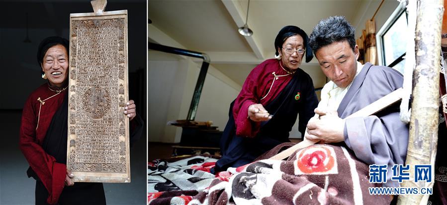 拼版照片:左圖為西藏昌都市江達縣波羅鄉(xiāng)外沖村村民澤培;右圖為在江達縣波羅鄉(xiāng)木松民族手工藝有限責任公司,澤培(左)在指導學生。澤培是當?shù)刂牟_木刻藝人,波羅木刻由于做工繁復,太消耗體能,收入不高,波羅木刻藝人的數(shù)量在過去幾十年間急劇減少。為保護和傳承波羅木刻,近年來,江達縣成立了波羅鄉(xiāng)木松民族手工藝有限責任公司。澤培招收了幾十名學徒傳授技藝,經(jīng)過練習,學徒們已經(jīng)成為熟練的木刻藝人,每人每月有4000多元的收入(5月1日攝)。新華社記者詹彥攝