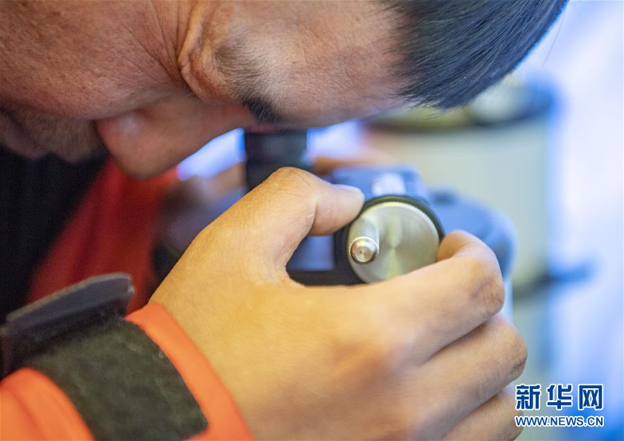 國(guó)測(cè)一大隊(duì)隊(duì)員在珠峰大本營(yíng)測(cè)試地面測(cè)量中使用的重力儀(5月3日攝)。新華社記者晉美多吉攝