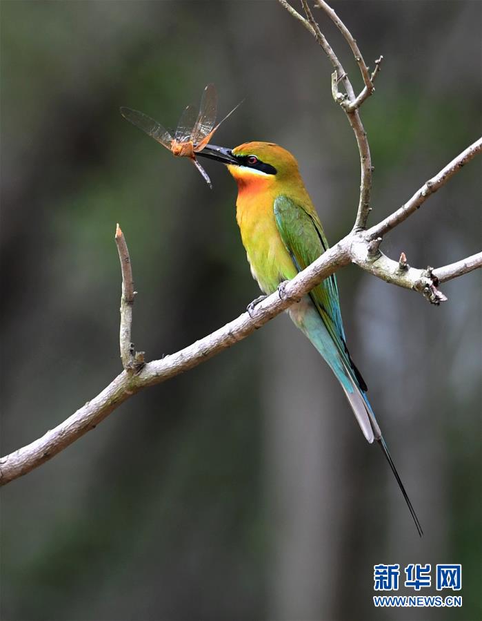 5月19日,在廈門五緣灣栗喉蜂虎自然保護(hù)區(qū),栗喉蜂虎捕到一只昆蟲。近日,大批栗喉蜂虎來到廈門五緣灣栗喉蜂虎自然保護(hù)區(qū)棲息、繁殖。新華社記者魏培全攝