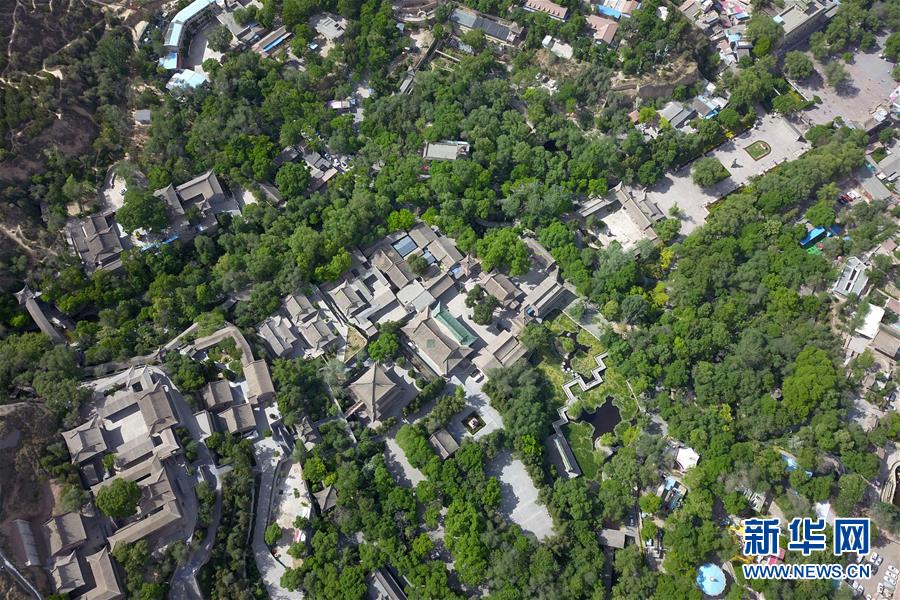 這是5月18日在蘭州市城關(guān)區(qū)拍攝的皋蘭山下五泉山公園初夏景象(無人機(jī)照片)。