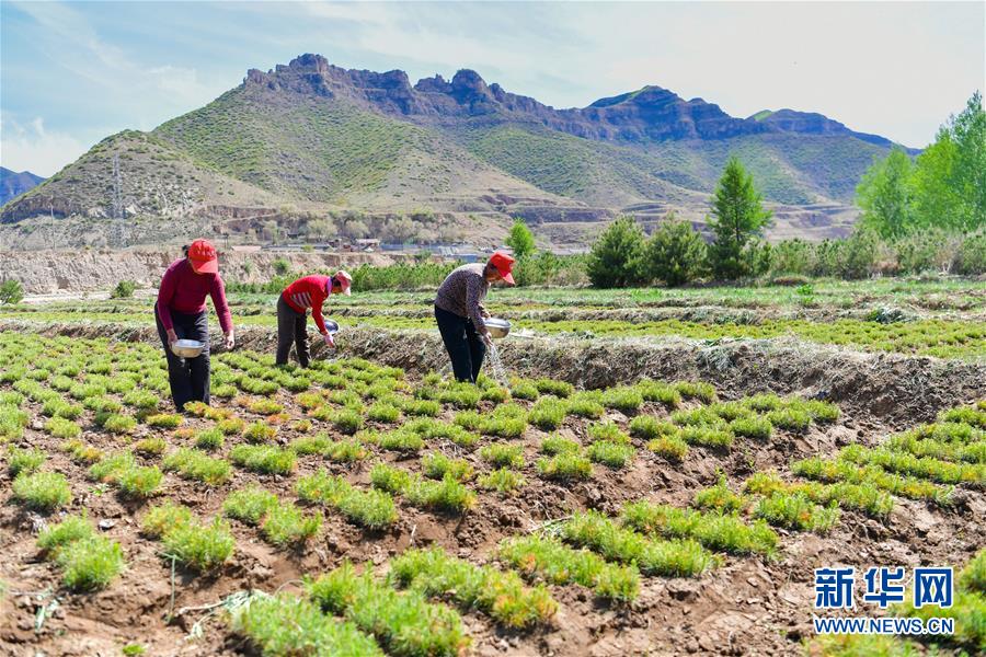 宋家溝村村民在給樹苗施肥(5月19日攝)。新華社記者曹陽(yáng)攝