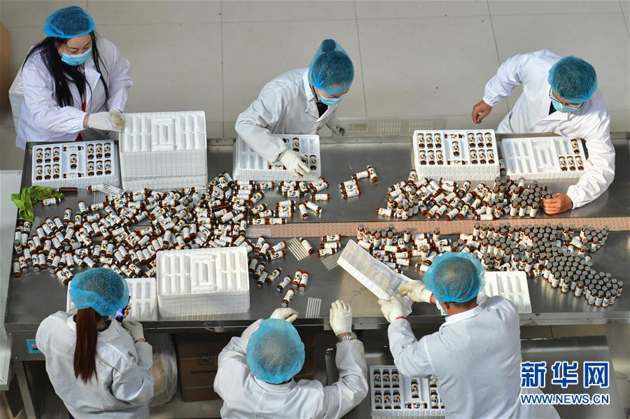 宋家溝村村民在食品加工廠包裝沙棘飲料(5月10日攝)。新華社記者曹陽(yáng)攝