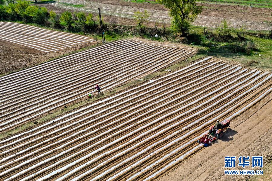 宋家溝村村民在種谷子(5月19日攝,無人機(jī)照片)。新華社記者曹陽(yáng)攝