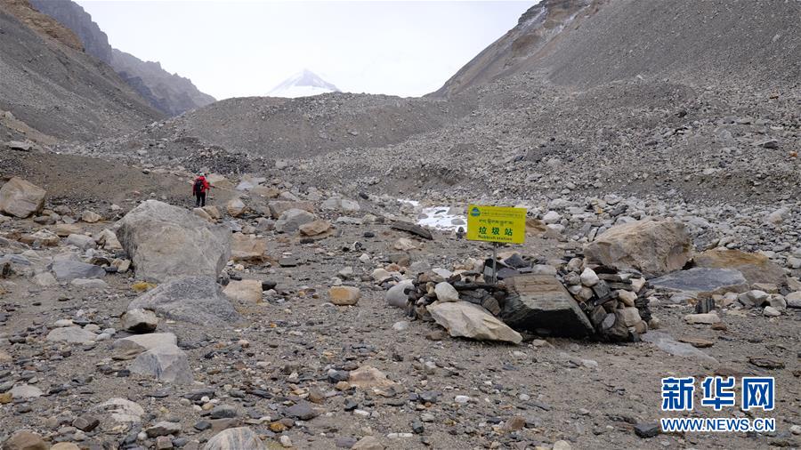 珠峰北坡攀登路線上設置的垃圾站(5月19日攝)。新華社記者晉美多吉攝