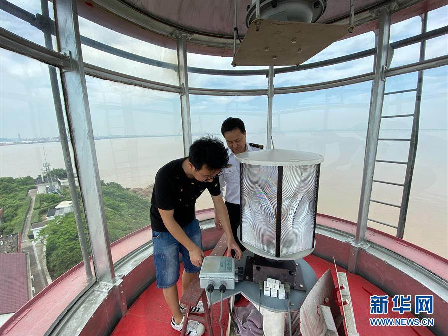 5月20日,在寧波七里嶼,葉家第五代燈塔工葉超群(左)和前來運送物資的父親葉靜虎在燈塔上查看設(shè)備。葉超群2013年起在七里嶼燈塔工作,葉靜虎從燈塔工崗位上退下來后,目前在寧波航標(biāo)處后勤事務(wù)中心工作。新華社記者翁忻旸攝