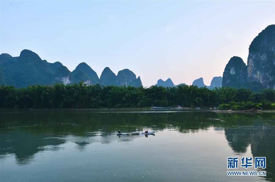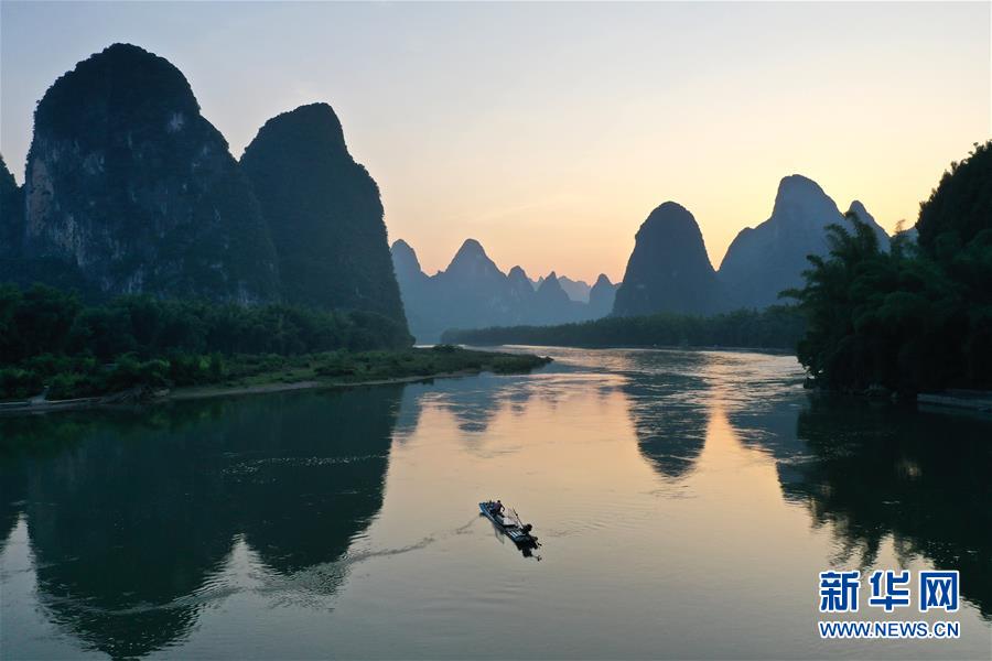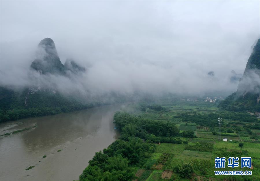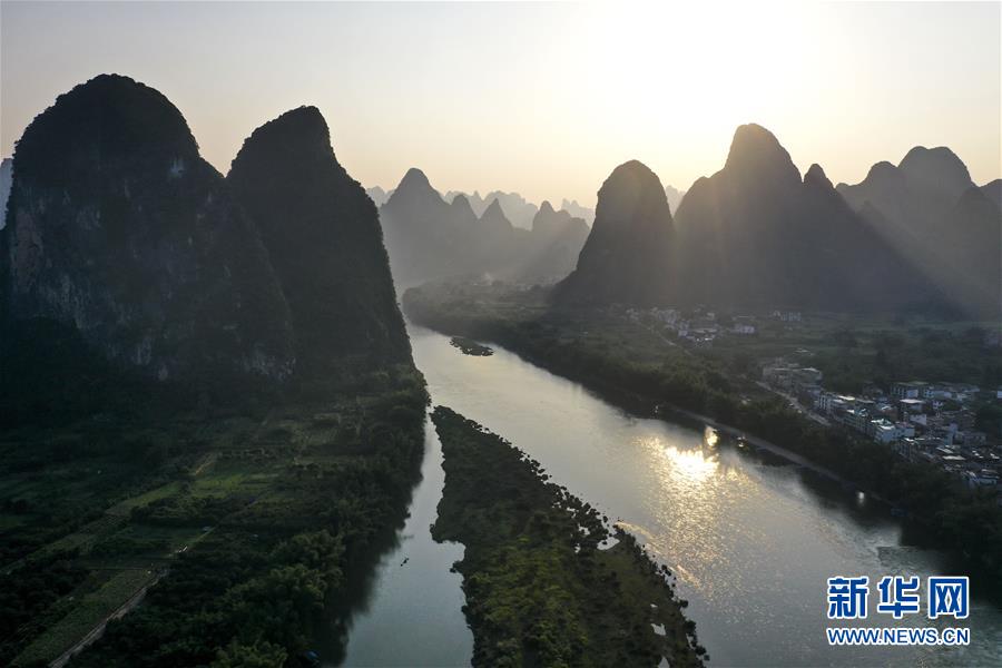 這是在廣西桂林市陽朔縣興坪鎮(zhèn)拍攝的山水風光(5月21日攝,無人機全景照片)?!吧n蒼森八桂,茲地在湘南。江作青羅帶,山如碧玉篸……”一千多年前,唐朝詩人韓愈寫盡桂林山水之美。初夏時節(jié),在廣西桂林市陽朔縣興坪鎮(zhèn),藍天白云下,煙雨朦朧中,桂林山水盡顯秀美。新華社記者周華攝