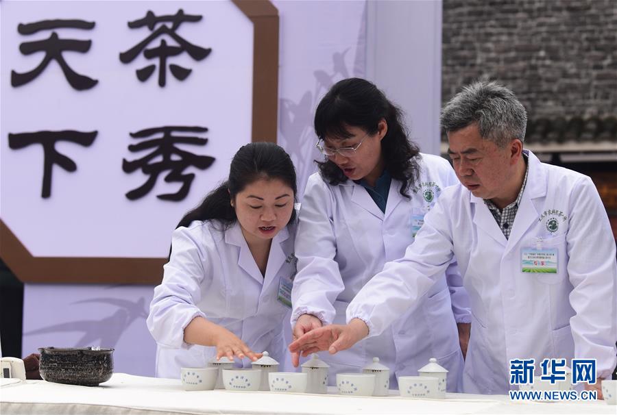 5月22日,專家在斗茶大會(huì)上評(píng)審參賽茶葉。當(dāng)日,2020永川秀芽第四屆斗茶大會(huì)在重慶市永川區(qū)舉行,22家從事茶葉生產(chǎn)加工的企業(yè)參加大會(huì)。近年來(lái),永川區(qū)把茶葉產(chǎn)業(yè)確立為農(nóng)業(yè)特色產(chǎn)業(yè)大力扶持,2019年全區(qū)茶葉種植面積近10萬(wàn)畝。新華社記者 王全超 攝