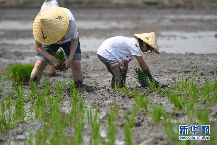 5月24日,小朋友在稻田里捉魚,體驗農(nóng)事。當日,十余名小朋友在家長的帶領下來到浙江省湖州市吳興區(qū)八里店鎮(zhèn)尹家圩糧油植保農(nóng)機專業(yè)合作社的稻田中,參加親子插秧、稻田捉魚等農(nóng)事體驗活動。新華社記者黃宗治攝
