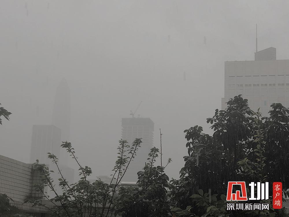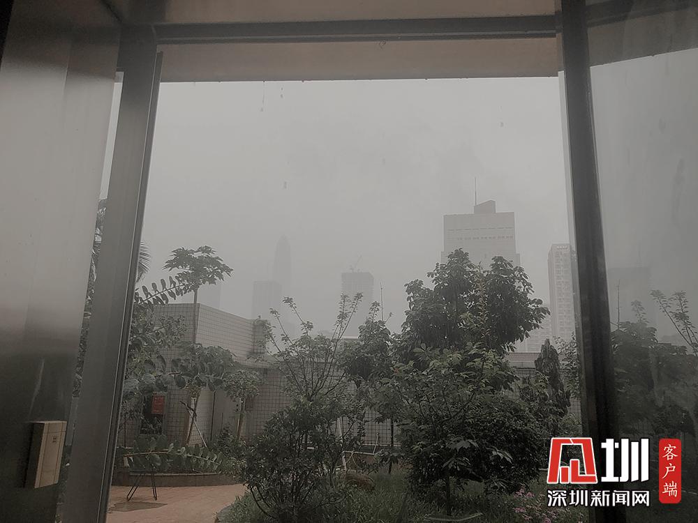 25日上午11時(shí)許,伴隨著雷聲,深圳市福田區(qū)開始下雨。