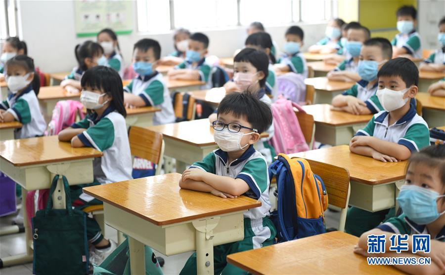 5月25日,廣州市荔灣區(qū)蔣光鼐紀(jì)念小學(xué)的學(xué)生在上課。當(dāng)日,廣州市各小學(xué)一至三年級(jí)學(xué)生正式開(kāi)學(xué)復(fù)課。至此,廣州市中小學(xué)各年級(jí)已全部開(kāi)學(xué)復(fù)課。新華社記者盧漢欣攝