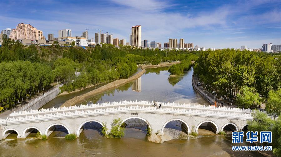 5月24日拍攝的榆林市榆溪河生態(tài)長廊(無人機(jī)照片)。新華社記者陶明攝
