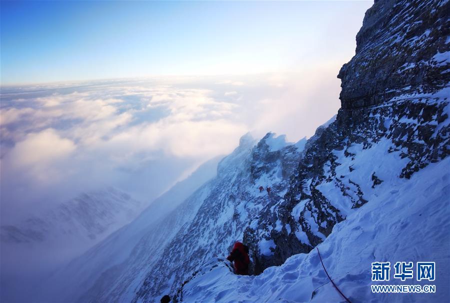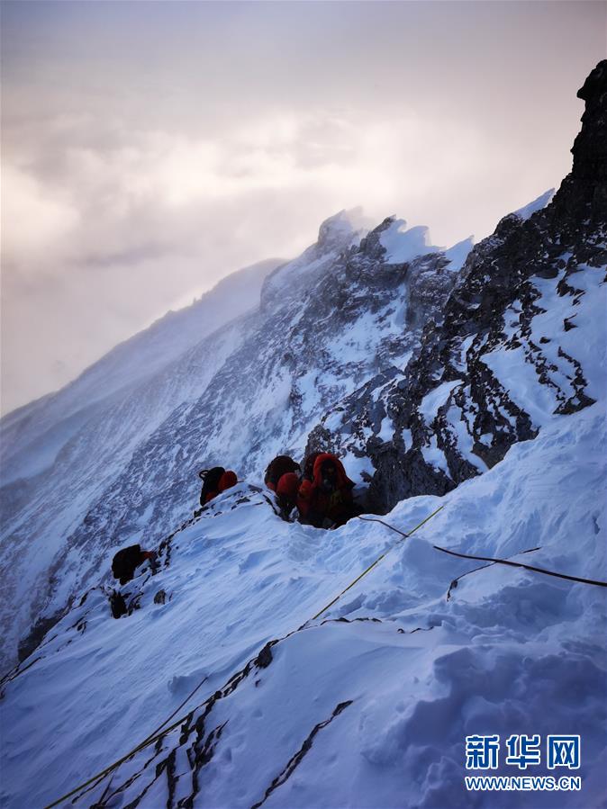 5月27日,2020珠峰高程測量登山隊(duì)正在向珠峰峰頂挺進(jìn)。新華社特約記者扎西次仁攝