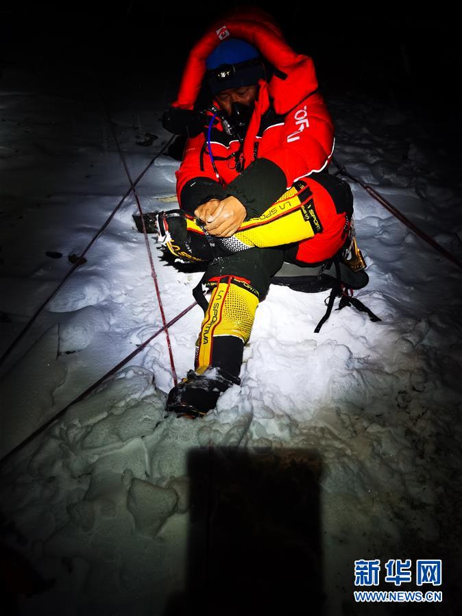 5月27日,2020珠峰高程測量登山隊隊員正在穿戴登山裝備。新華社特約記者扎西次仁攝