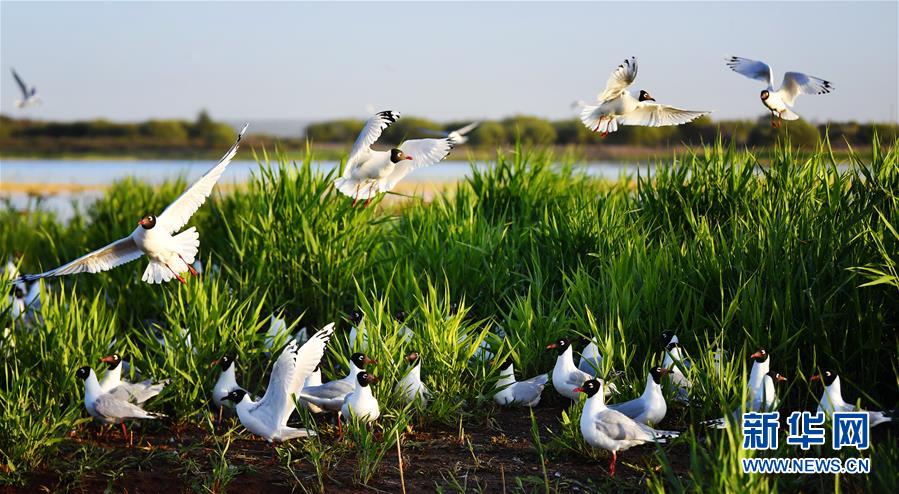 5月28日在陜西省神木市紅堿淖拍攝的遺鷗。陜西省神木市紅堿淖是中國(guó)最大的沙漠淡水湖,近年來(lái)隨著周邊生態(tài)環(huán)境改善,紅堿淖水位逐年提升,水域面積不斷擴(kuò)大,每年四至八月,都會(huì)吸引大批遺鷗來(lái)此繁衍棲息,已成為遺鷗繁殖的重要基地。新華社記者劉瀟攝