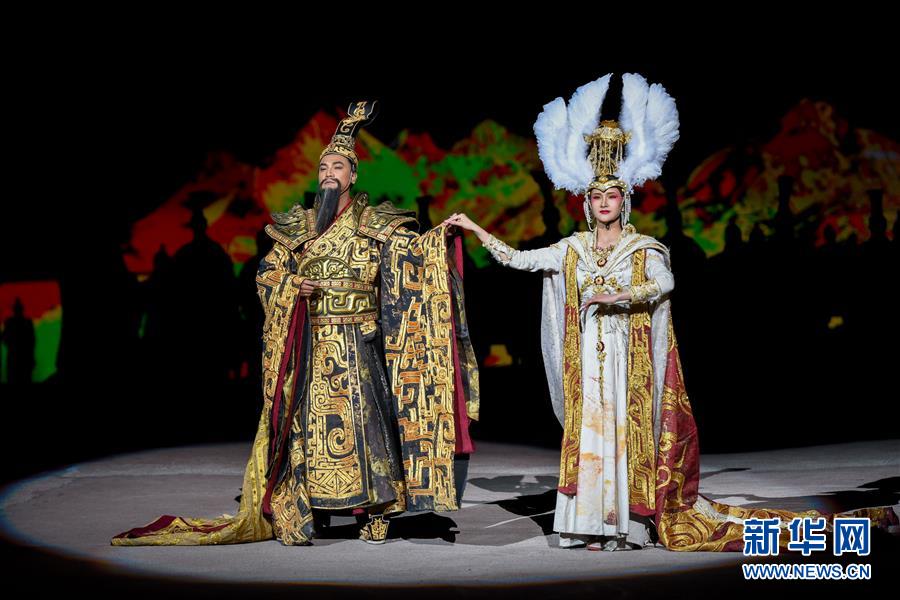 5月28日,演員在大型實(shí)景神話音樂劇《昆侖之約》中表演。5月28日,新疆文化旅游新名片——大型實(shí)景神話音樂劇《昆侖之約》在烏魯木齊南山景區(qū)上演。該劇融自然山水之美、藝術(shù)文化之光、現(xiàn)代科技之新于一體,為市民獻(xiàn)上一場(chǎng)視聽盛宴。新華社記者丁磊攝
