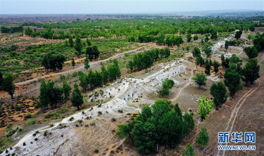 統(tǒng)萬城北接浩瀚的毛烏素沙漠,千余年來,隨著惡劣生態(tài)環(huán)境的影響,曾經(jīng)的城池遺存遭到風(fēng)雨流沙侵蝕,一度掩埋于沙漠之下。如今,隨著當(dāng)?shù)貛状舜罅χ紊?,生態(tài)環(huán)境得以明顯改善,統(tǒng)萬城遺址也隨之變成綠意盎然的“大漠名勝”。