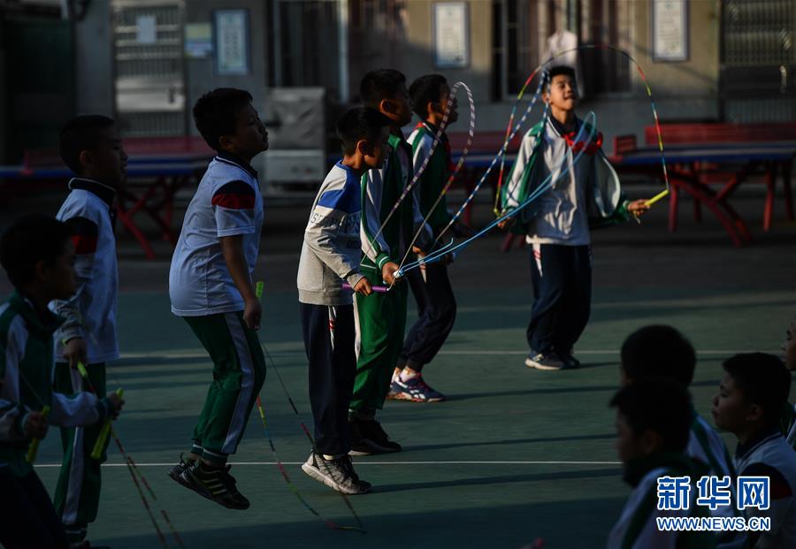 跳繩運動已經(jīng)深深融入七星小學(xué)的日常,體育課上同學(xué)們在練跳繩(2019年11月18日攝)。新華社記者劉大偉攝
