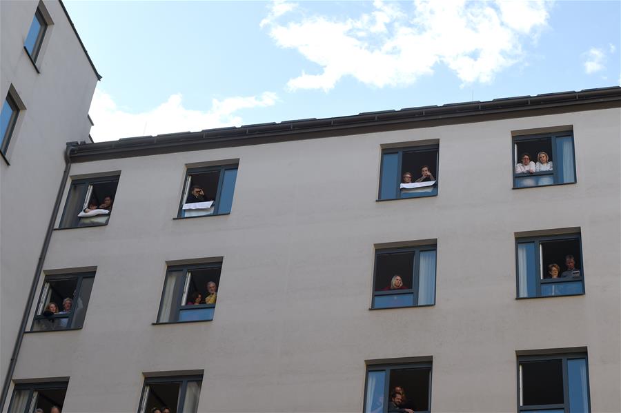 5月30日,在奧地利維也納“時代精神”酒店內(nèi),人們在房間窗口欣賞歌劇演出。當日,奧地利首都維也納的一家名為“時代精神”的酒店為迎接“解封”后恢復營業(yè),在其庭院內(nèi)舉辦“窗口音樂會”。按照奧政府此前公布的“解封”時間表,從29日起,賓館酒店以及健身房、游泳池和游樂場等休閑娛樂場所有條件恢復運營。新華社記者郭晨攝