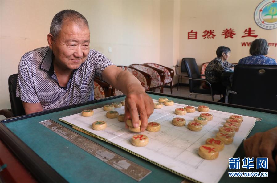 6月1日,在正定縣塔元莊村勁松老年公寓,老人在棋牌室下象棋。新華社記者朱旭東攝。