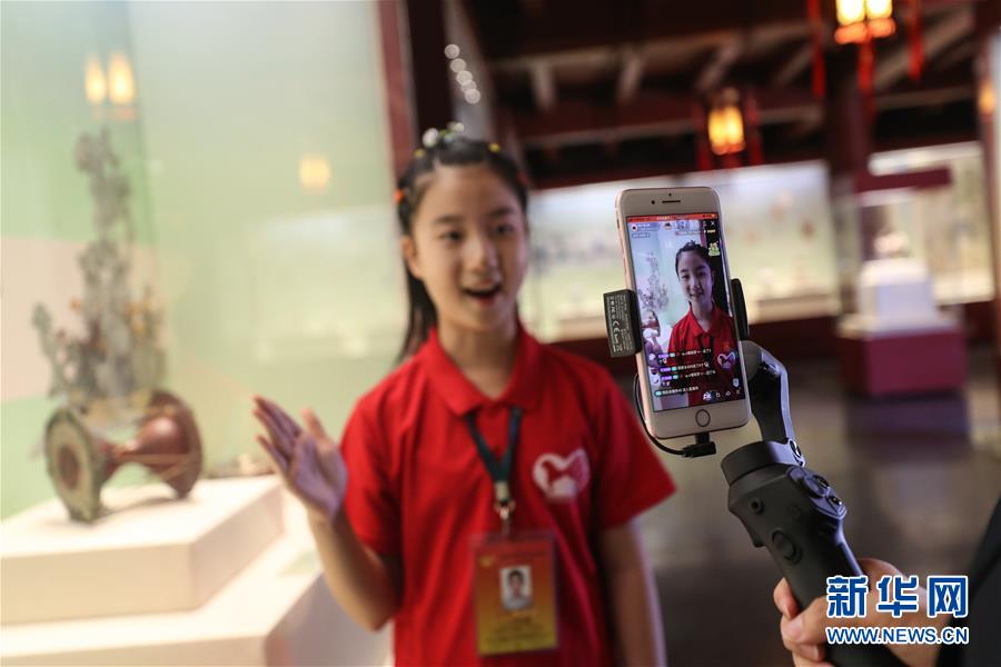6月1日,小志愿者于冰清在沈陽(yáng)故宮博物館內(nèi)通過(guò)直播向觀眾講解“古趣童心——清宮文物中的兒童世界”展覽。當(dāng)日是“六一”國(guó)際兒童節(jié),沈陽(yáng)故宮博物館的小志愿者利用網(wǎng)絡(luò)直播的形式,帶領(lǐng)小朋友“云”逛沈陽(yáng)故宮博物館,并向小朋友們?cè)敿?xì)講解正在館內(nèi)展出的“古趣童心——清宮文物中的兒童世界”展覽。新華社記者潘昱龍攝。