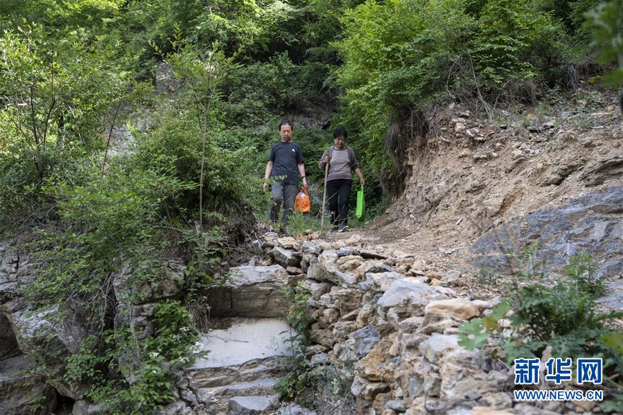 馬武寨寄宿制小學(xué)校長趙金成(左)和語文老師崔連瑞前往南背村三姐弟的家(5月31日攝)。新華社記者楊晨光攝。