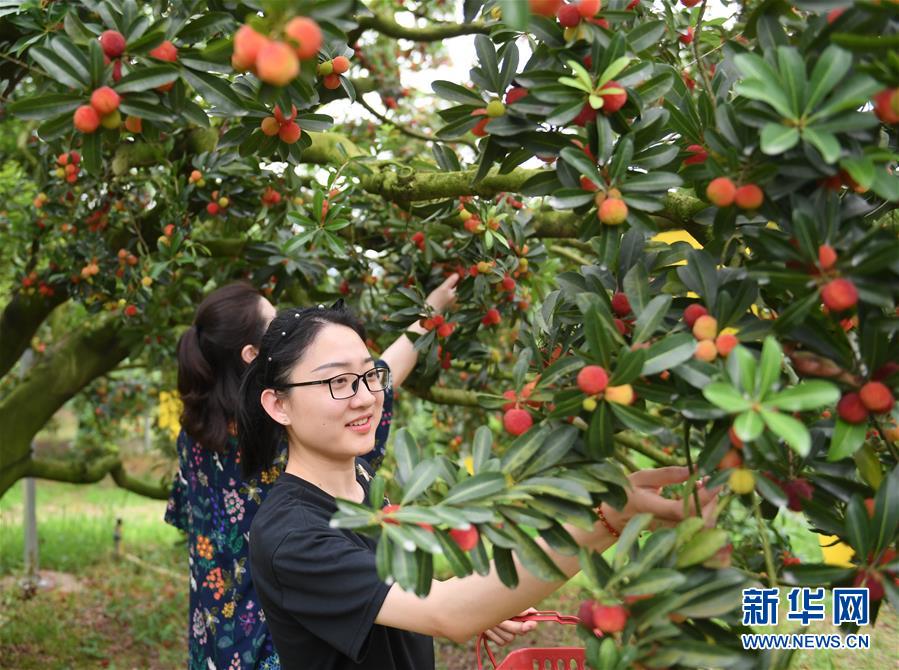 6月3日,果農(nóng)在上虞區(qū)驛亭鎮(zhèn)真山楊梅基地采摘。近日,浙江紹興上虞區(qū)二都楊梅開采。楊梅是上虞區(qū)傳統(tǒng)特色農(nóng)產(chǎn)品,目前上虞區(qū)二都楊梅種植面積1651公頃,年產(chǎn)量1.1萬噸,2019年二都楊梅成功申報國家農(nóng)產(chǎn)品地理標志認證。新華社記者翁忻旸攝。