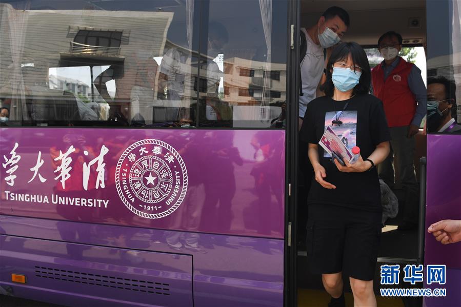 6月6日,在清華大學(xué),返校學(xué)生走下清華大學(xué)接站專(zhuān)車(chē)。