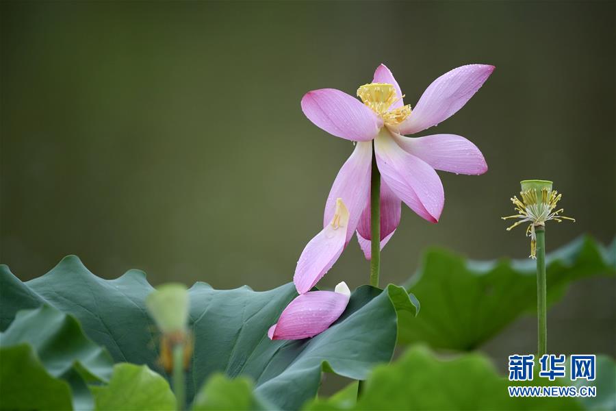 6月7日,一陣小雨過后,福州金山公園內(nèi)盛開的荷花愈加嬌艷欲滴。新華社記者姜克紅攝