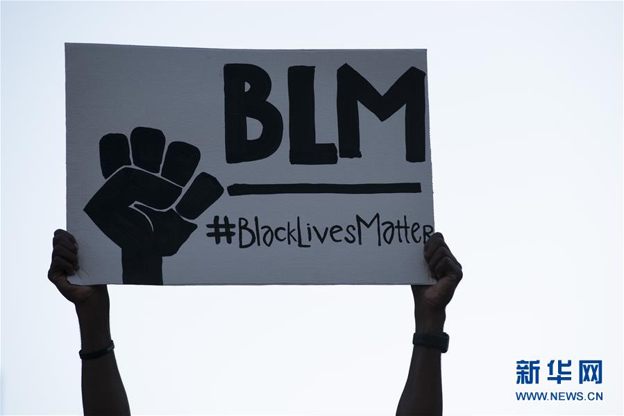 6月8日,一名男子在美國華盛頓白宮附近手舉“黑人的命也是命”的抗議標語。新華社記者劉杰攝