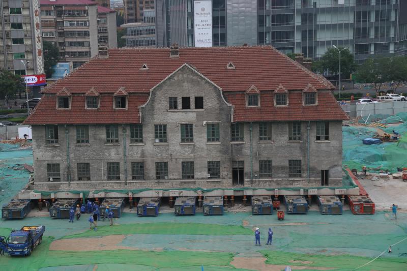 山東濟南2600噸百年修女樓坐“車”準(zhǔn)備平移