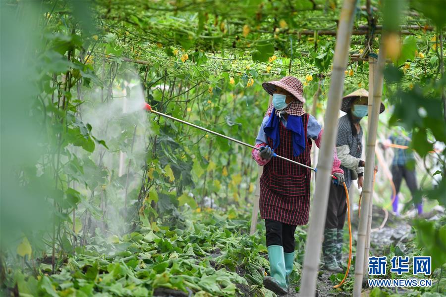 6月9日,在江華瑤族自治縣濤圩鎮(zhèn)鳳尾村蔬菜基地,農(nóng)戶對農(nóng)作物進(jìn)行噴灑消毒。近日,受連續(xù)強降雨影響,湖南省永州市江華瑤族自治縣遭遇洪澇災(zāi)害,部分農(nóng)田受災(zāi)。目前,江華瑤族自治縣洪水已退,群眾在當(dāng)?shù)叵嚓P(guān)部門引導(dǎo)下積極開展生產(chǎn)自救。新華社記者陳澤國攝