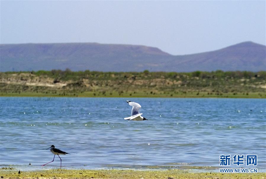 這是6月9日在泊江海子拍攝的黑翅長腳鷸(左)和遺鷗。近年來,在當(dāng)?shù)卣亩喾N措施治理下,曾經(jīng)水面萎縮的內(nèi)蒙古自治區(qū)鄂爾多斯市境內(nèi)的泊江海子水量逐漸恢復(fù)。近期,包括遺鷗在內(nèi)的40多種鳥類來此棲息,泊江海子重新成為鳥類的樂園。新華社記者賈立君攝